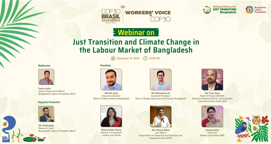 As world leaders meet at COP30 in Brazil, hundreds of young people, workers, and climate-affected communities marched in Dhaka demanding climate justice and a Just Transition that prioritizes people over profit. Organized by YouthNet Global, Bangladesh Labour Foundation (BLF), National Alliance for Just Transition Bangladesh (NAJTB), and Bangladesh Institute of Labor Studies (BILS), the strike […]
