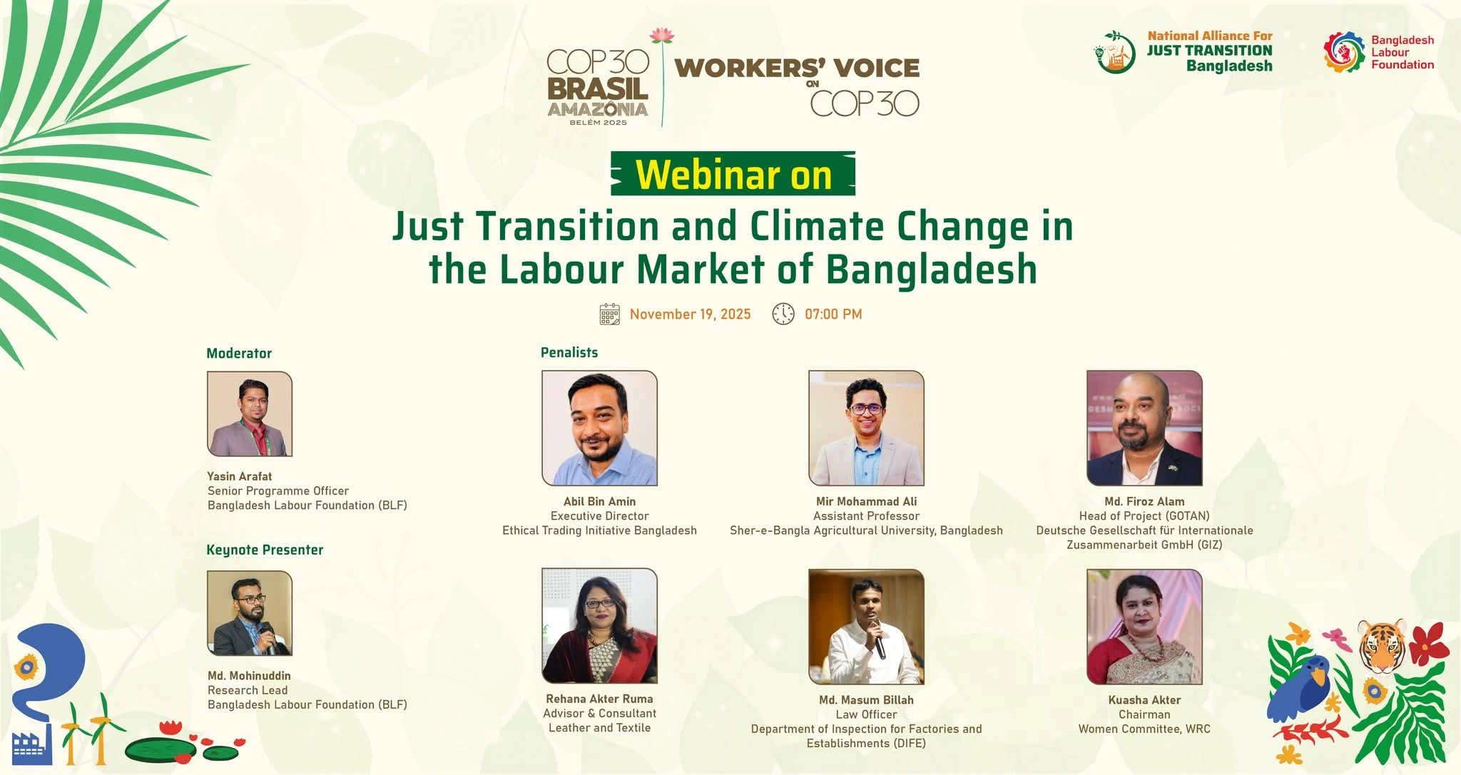 The Bangladesh Labour Foundation (BLF) recently organized a webinar titled “Just Transition and Climate Change in the Labour Market of