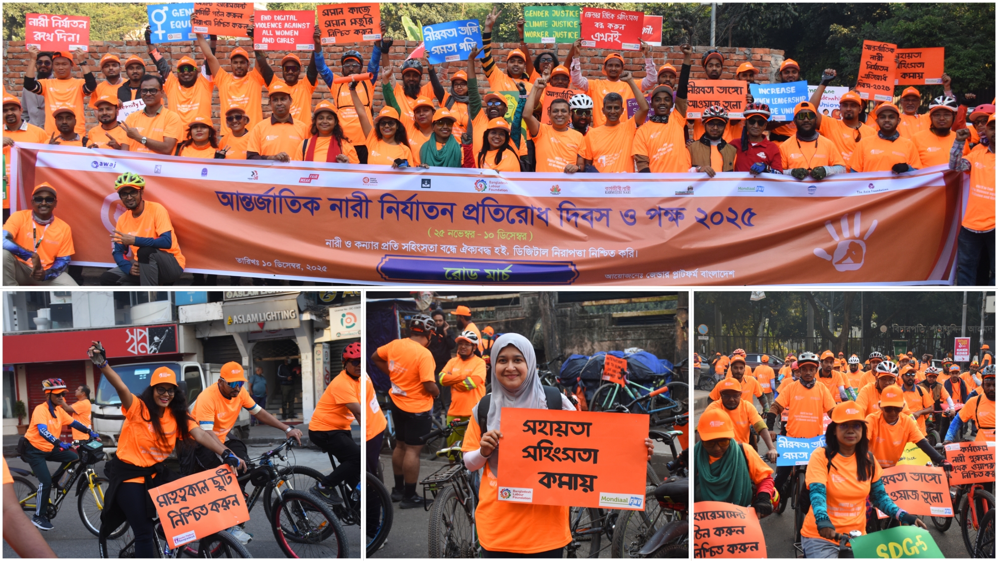 The 16 Days of Activism Against Gender-Based Violence campaign concluded with a powerful call to action on Human Rights Day. In alignment with this year’s global theme, “UNiTE to End Digital Violence Against All Women and Girls,” Bangladesh Labour Foundation (BLF), in association with Gender Platform Bangladesh, organized a Cycle Rally to amplify awareness and mobilize public support against online abuse.